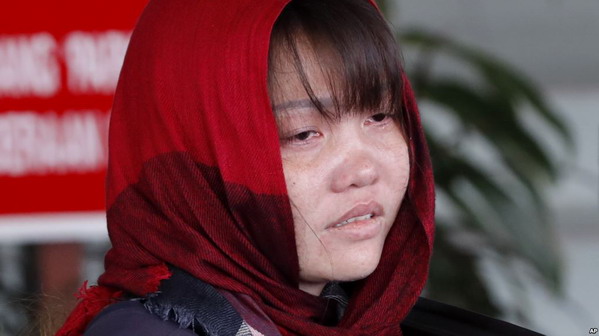 Trước đó 3 ngày, đồng nghi phạm của cô Hương, công dân Indonesia Siti Aisyah, bất ngờ được phóng thích, sau khi các công tố viên Malaysia hủy cáo trạng liên quan tới vụ sát hại ông Kim Jong Nam.